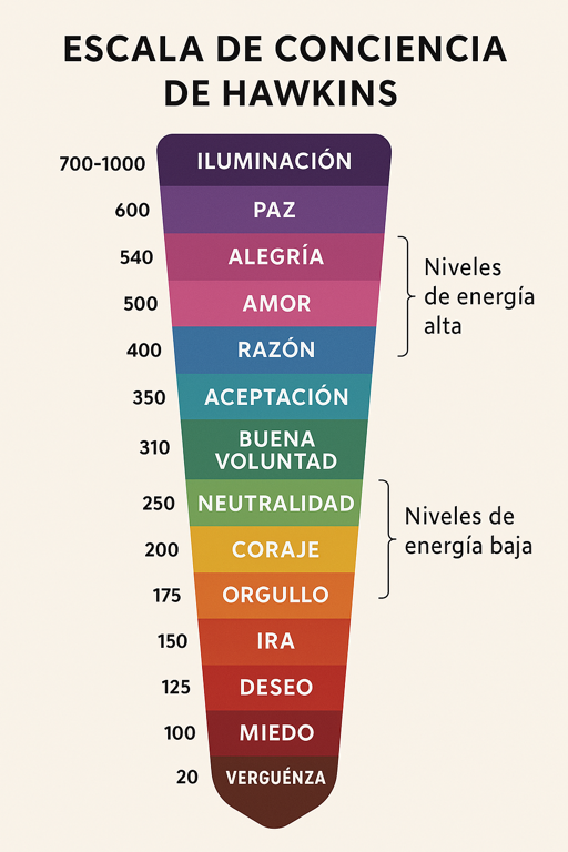 Desarrollado por el Dr. David Hawkins, este mapa no se presenta como una teoría filosófica abstracta, sino como una guía práctica y calibrada para navegar la experiencia humana.
