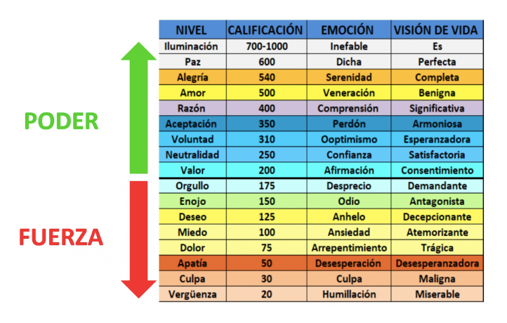 El resultado de este camino fue el Mapa de la Conciencia, una escala que describe diferentes niveles vibratorios, desde los más densos y limitantes hasta los más elevados y expansivos.